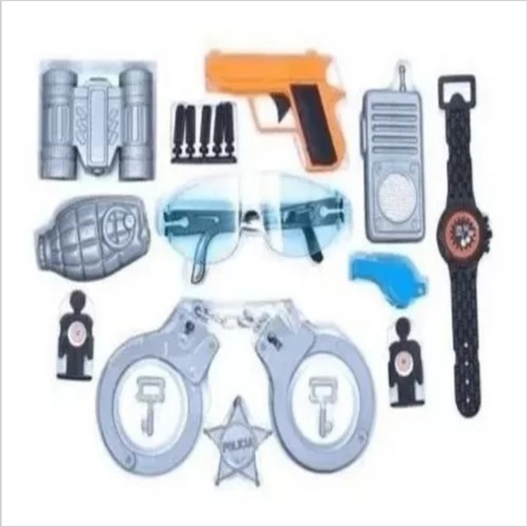 Em até 4x de R$ 22,48 sem juros À vistaR$ 80,91no Pix Kit Policial Brinquedo Police Departmento Algemas Revolver