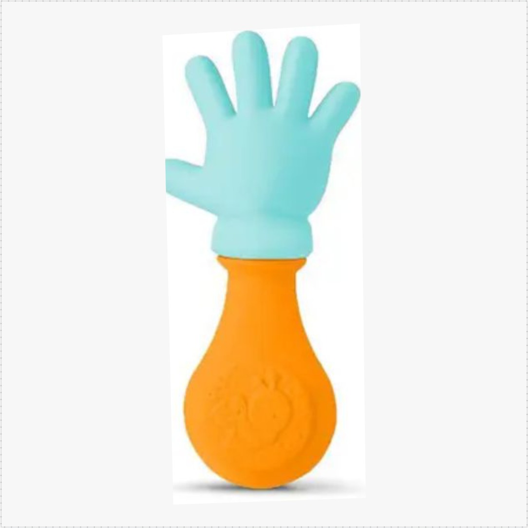 Com sua forma de mãozinha é atrativo e divertido para os pequenos