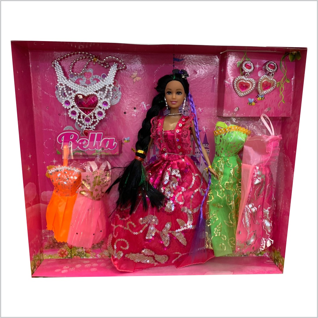 Em até 4x de R$ 22,48 sem juros À vistaR$ 80,91no Pix Boneca Bella Fashion Doll Com 4 vestidos Acessórios colar, Brinco, Linda boneca!