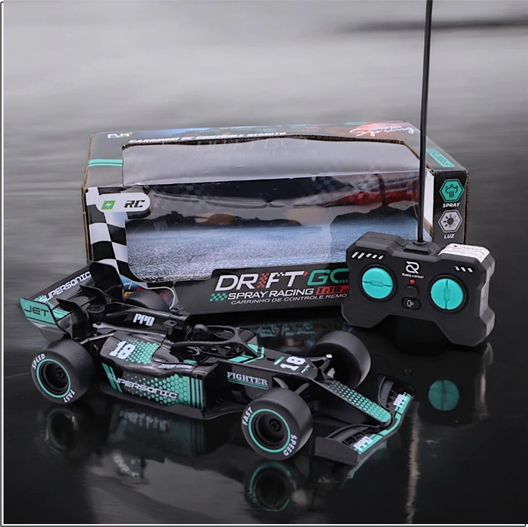 Carro Controle Remoto Fórmula 1 Drift Go Spray Racing Preto.
