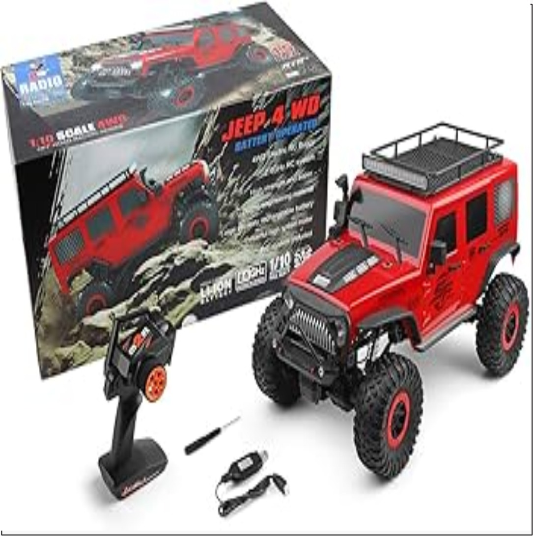 Jeep off-road elétrico 2.4GHz 4WD RC RTR. escala 1/10 é adequado para brincadeiras em ambientes internos e externos.